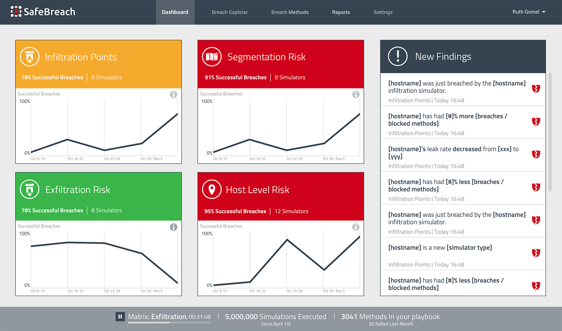 SafeBreach is a cybersecurity company that developed a platform that simulates hacker breach methods, running continuous "war games" to identify breach scenarios across network systems. SafeBreach's product is a continuous security validation platform that constantly runs breach simulations on a client's network to theoretically and proactively locate and remediate security issues. Using a library of hacker breach methods called the "Hacker's Playbook" SafeBreach develops potential breach scenarios specific to a client's environment and runs simulations to identify whether or not the security defense systems that are in place can defend itself. There are thousands of different possible breach scenarios depending on a client's unique network setup.